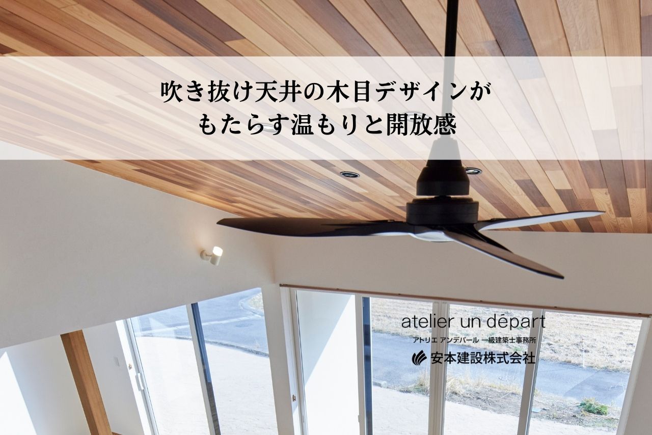 吹き抜け天井の木目デザインは、開放感あふれる空間に自然の温もりと洗練された美しさを加えることで、住ま・・・