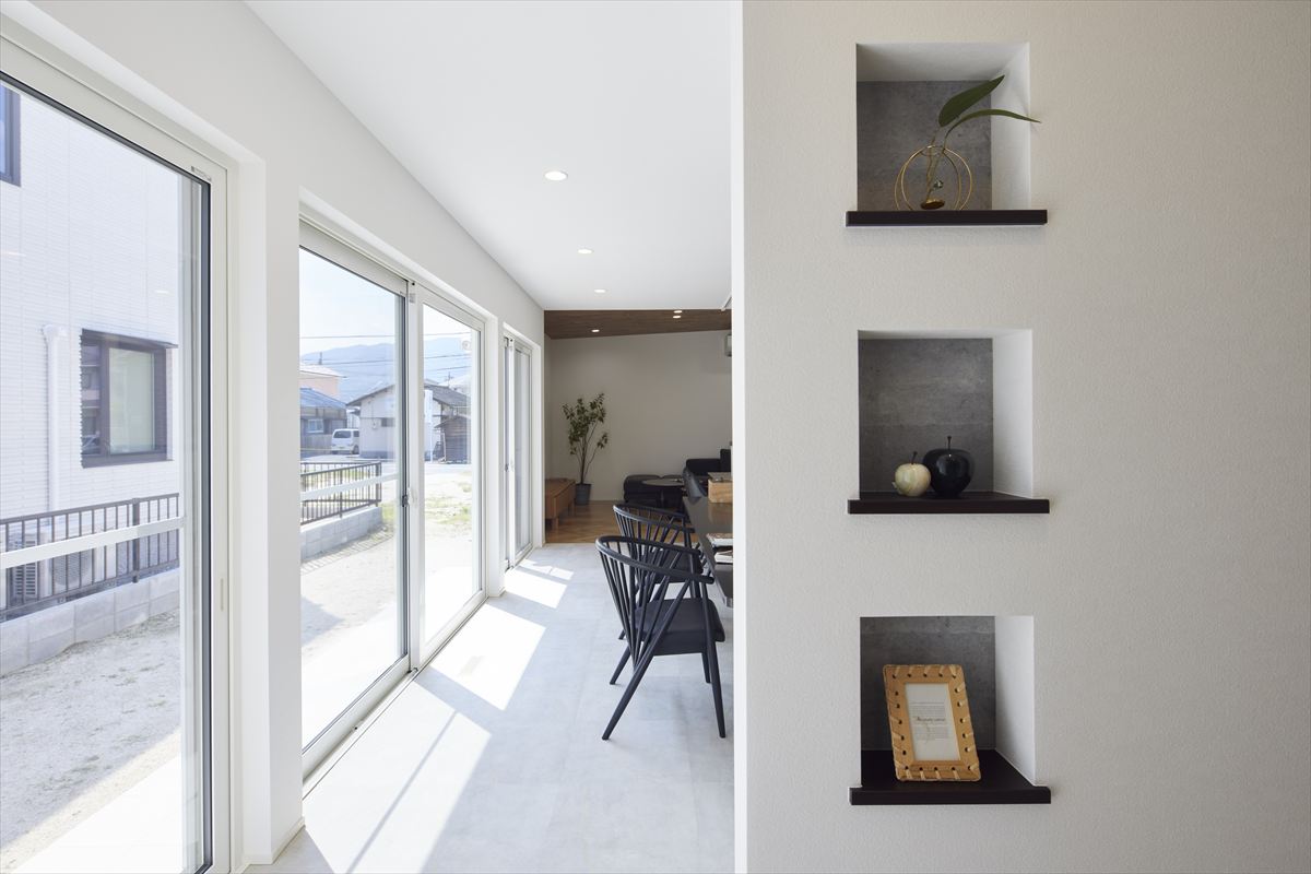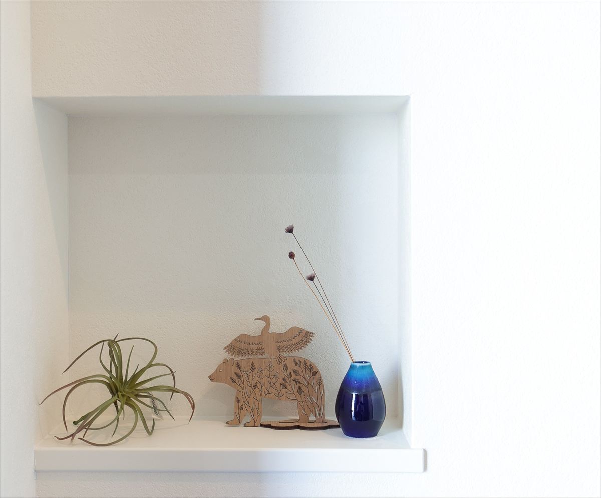 壁の厚みを利用して作るニッチは、空間に奥行きと個性を与え、収納やディスプレイの場としても活躍します。