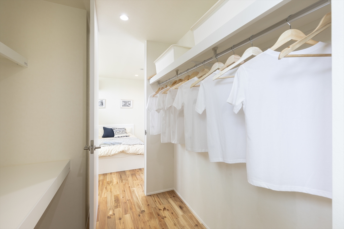 ウォークインクローゼットは、衣類をまとめて収納できるため、寝室を広く使えると人気です。