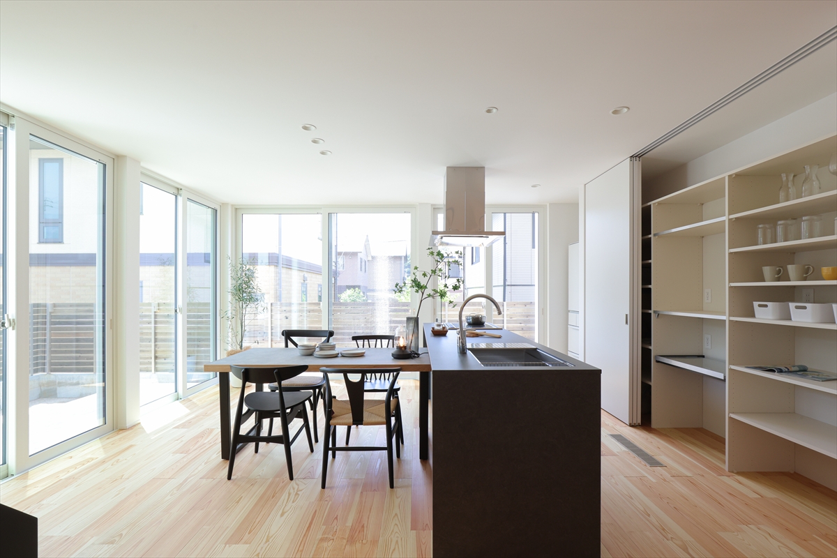 パントリーは、食品や飲料のストック、調理器具などを収納するのに役立ち、キッチン周りをすっきりと保てます。